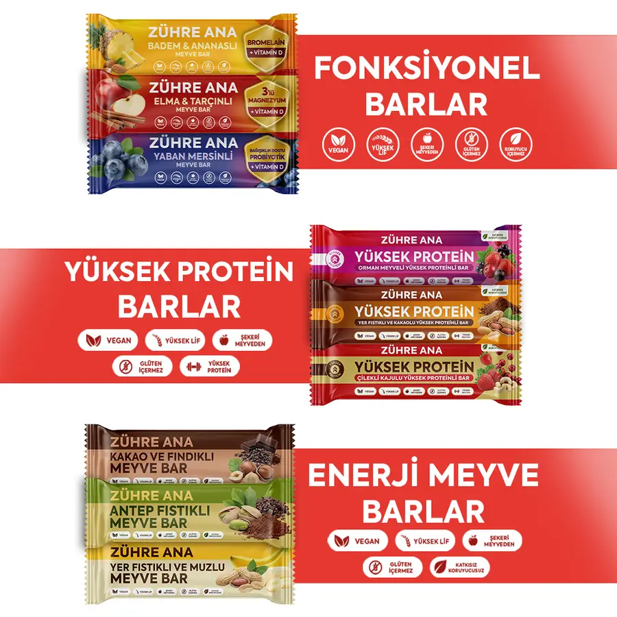 Ein spezielles Probierpaket mit Fruchtriegeln in verschiedenen Geschmacksrichtungen und Zusammensetzungen. Bietet praktische, gesunde und leckere Snack-Alternativen. Für den täglichen Verzehr geeignet. Ideal für Zwischenmahlzeiten und einen aktiven Lebensstil. Dank der verschiedenen Geschmacksrichtungen ist für jeden Geschmack etwas dabei.