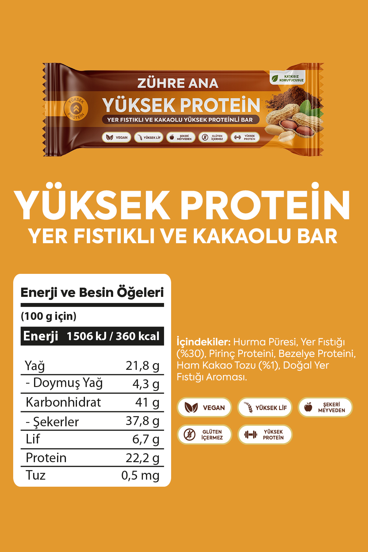 Ein praktischer, gesunder und leckerer Snack in Riegelform. Natürlich mit Dattelpüree gesüßt. Enthält 30 % Erdnüsse. Mit Reis- und Erbsenprotein angereichert. Enthält keinen zusätzlichen Zucker, keine künstlichen Süßstoffe, Zusatzstoffe oder Konservierungsstoffe. Für den täglichen Verzehr geeignet. Reich an Ballaststoffen. Glutenfrei. Vegan.
